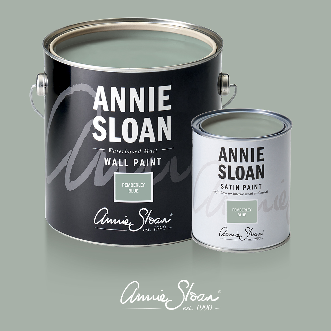 Pemberly Blue to bardzo uniwersalny,  od lat znany, elegancki kolor. To chłodny błękit, który został zabarwiony zielenią z dużą ilością bieli. Będzie idealnie komponował się z barwą Duck Egg Blue i Old White z palety farb kredowych Chalk Paint.